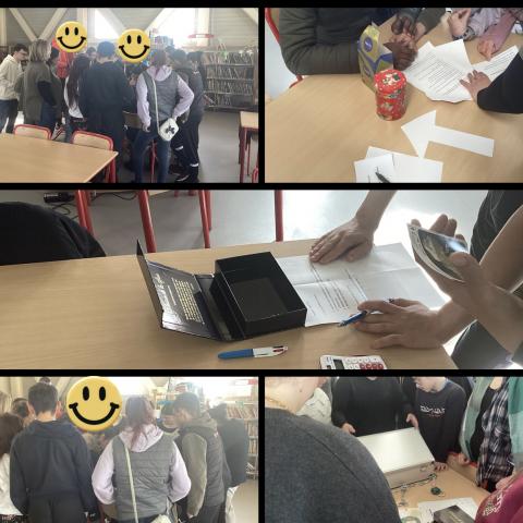 Mardi 24 février , les élèves de 4 ème 1 ont participé à un escape game sur l'illettrisme, au CDI, dans le cadre de leur projet Jeunes en librairie.